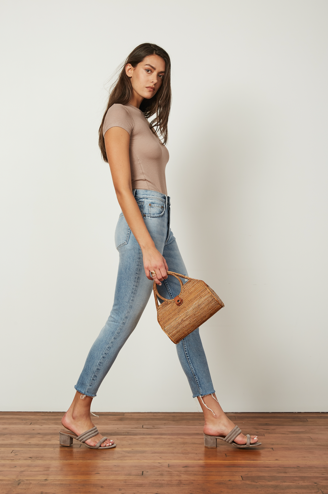 The Billy is a high waisted rigid skinny jean reminiscing the most perfect hip hugging vintage jean in a light eco wash with a raw hem and minimal destruction. This jean includes Recycled Cotton reducing its carbon footprint and reducing water.