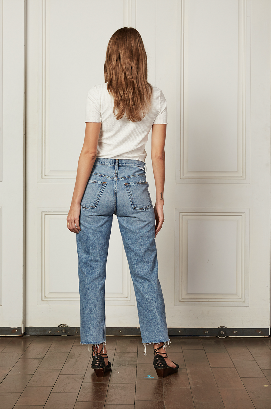 The Tommy is a high waisted rigid straight jean in the perfect medium eco wash with a raw hem. This jean includes Recycled Cotton reducing its carbon footprint and reducing water usage.