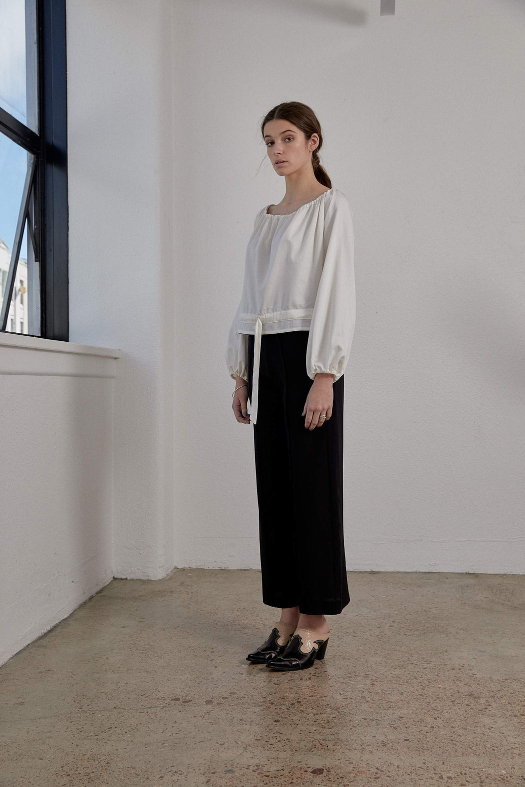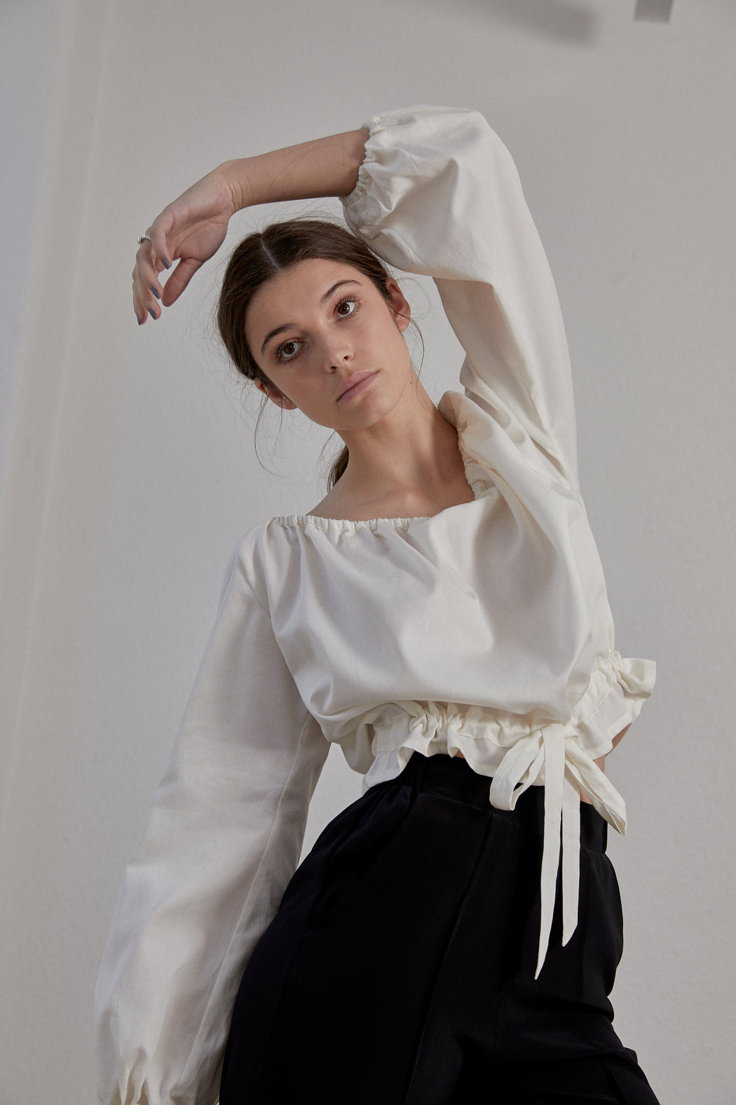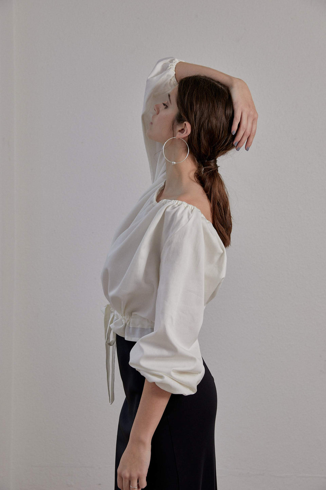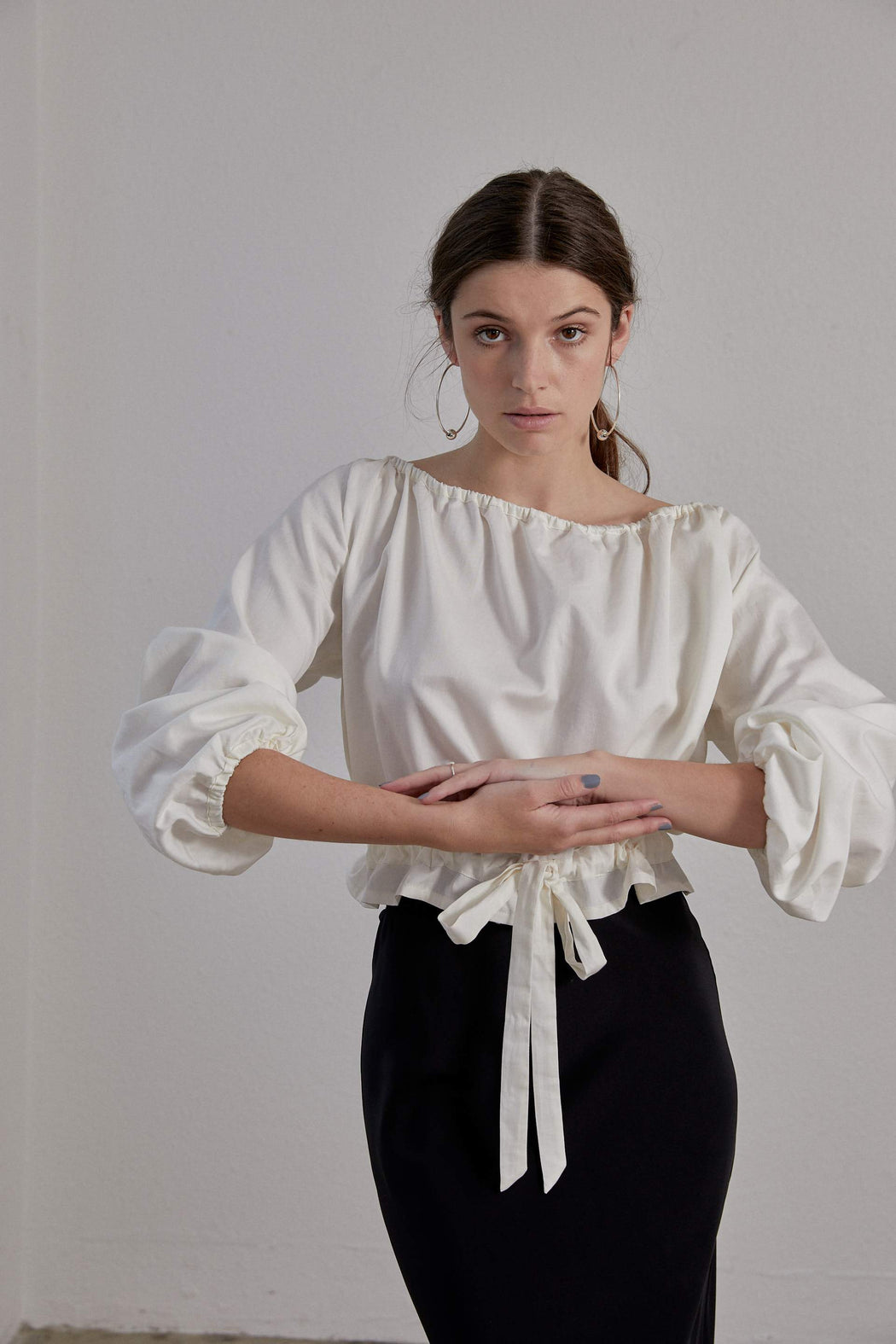 This OVNA OVICH 'Isadora Top' is a romantic top that has an elasticated cuff and neck which you can choose to push the sleeve up or keep the full length and wear the neck on or off the shoulder. The waist can also be worn loose or drawn in with the self-fabric drawcord. Crafted from 100% GOTS Certified Organic Cotton Sateen and made locally within a 9 mile radius of their Auckland studio.